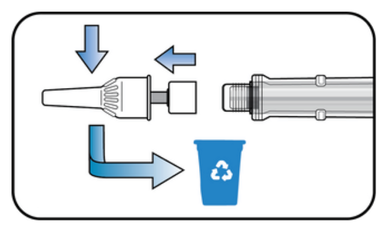 Replace needle cover, unscrew, and dispose in sharps bin.